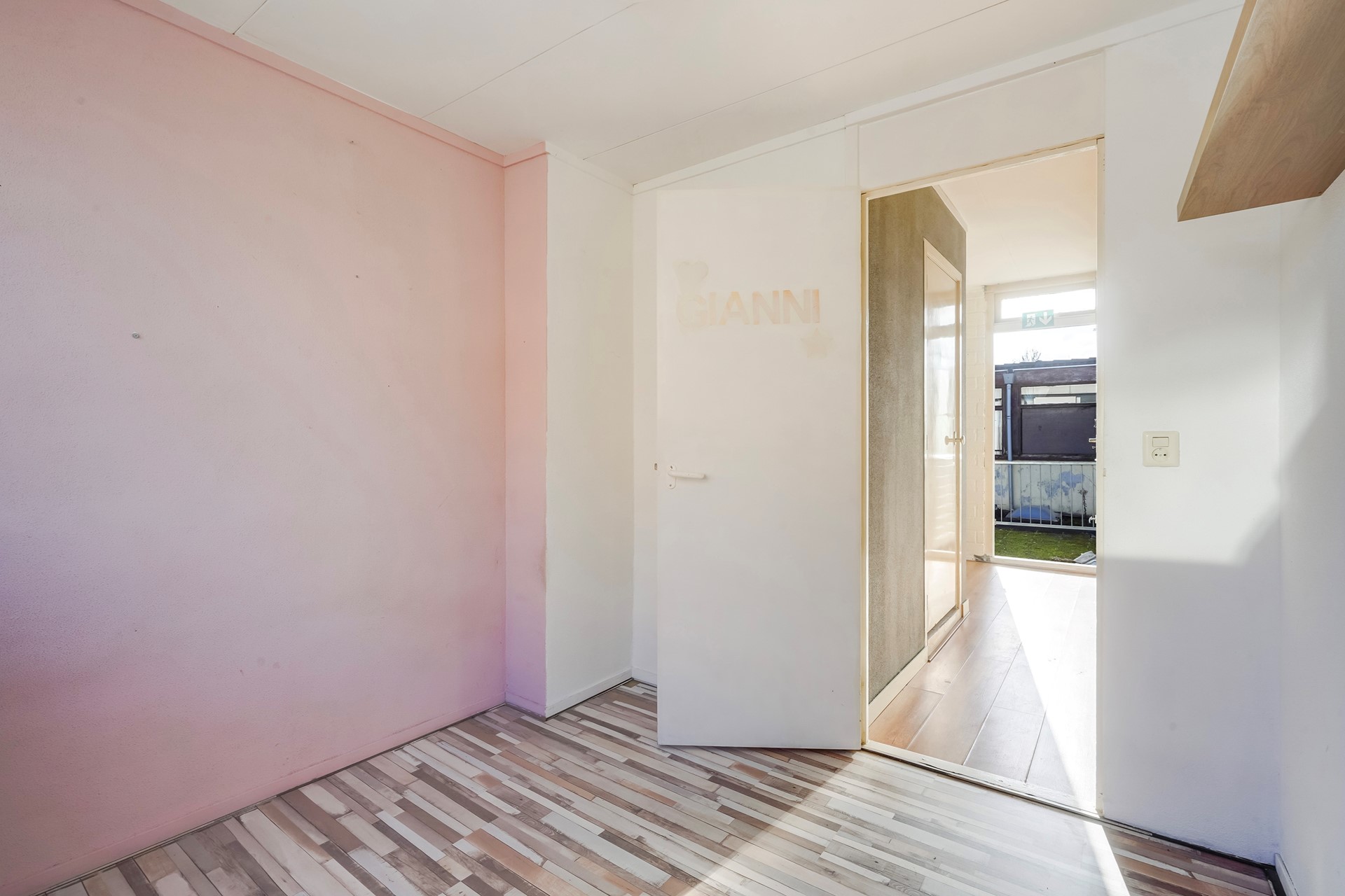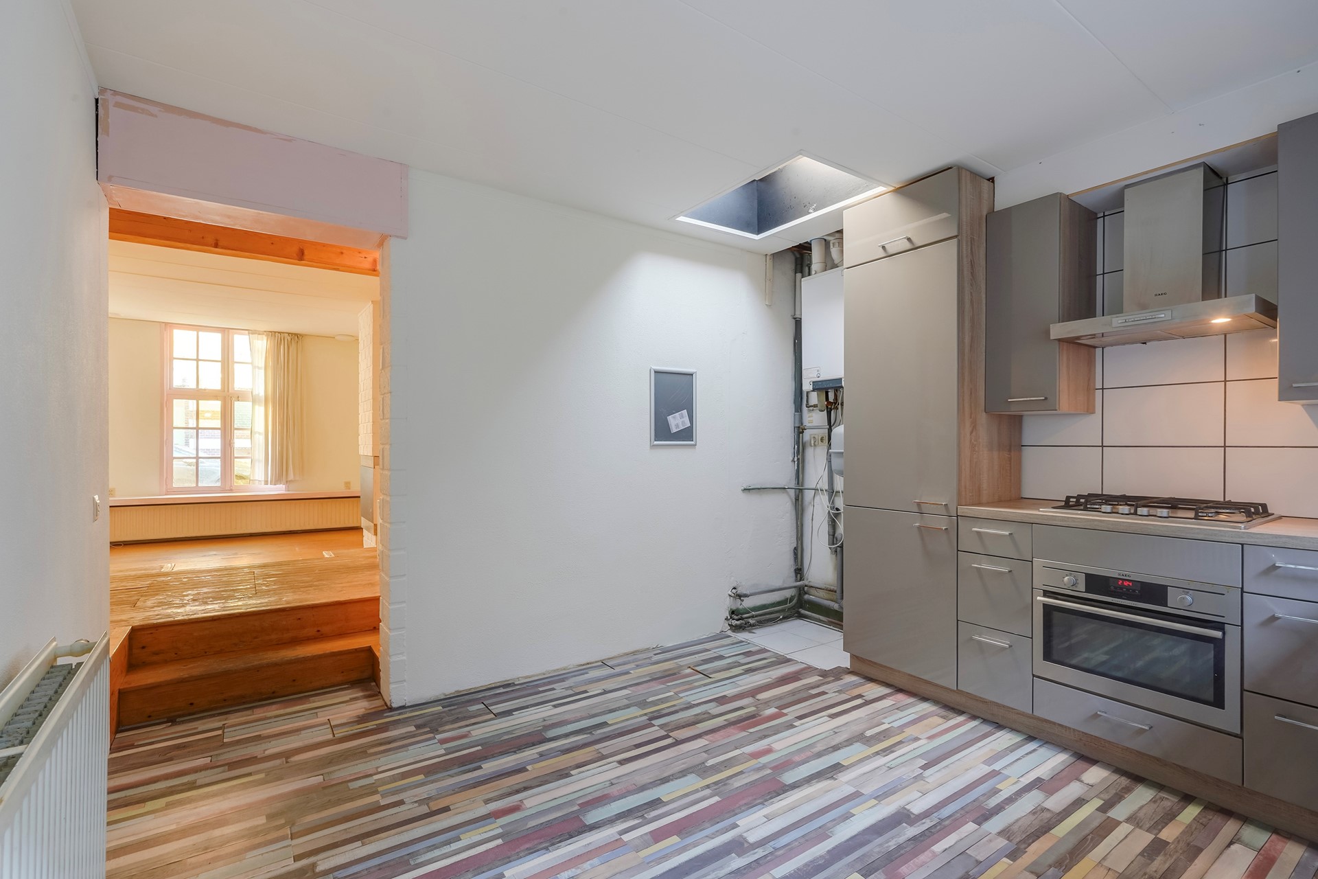 You enter through the hallway, which leads to a separate toilet and the bright living room overlooking the street. The ground floor offers a pleasant living space with plenty of options for reconfiguration. In the living room, the floor has been raised with wood for extra storage space. This space can also be removed. The closed kitchen is located at the rear of the house and is equipped with a 4-burner gas hob, oven, and fridge-freezer combination. The rental boiler (Intergas Kompakt HRE, built in 2016) is also located here.