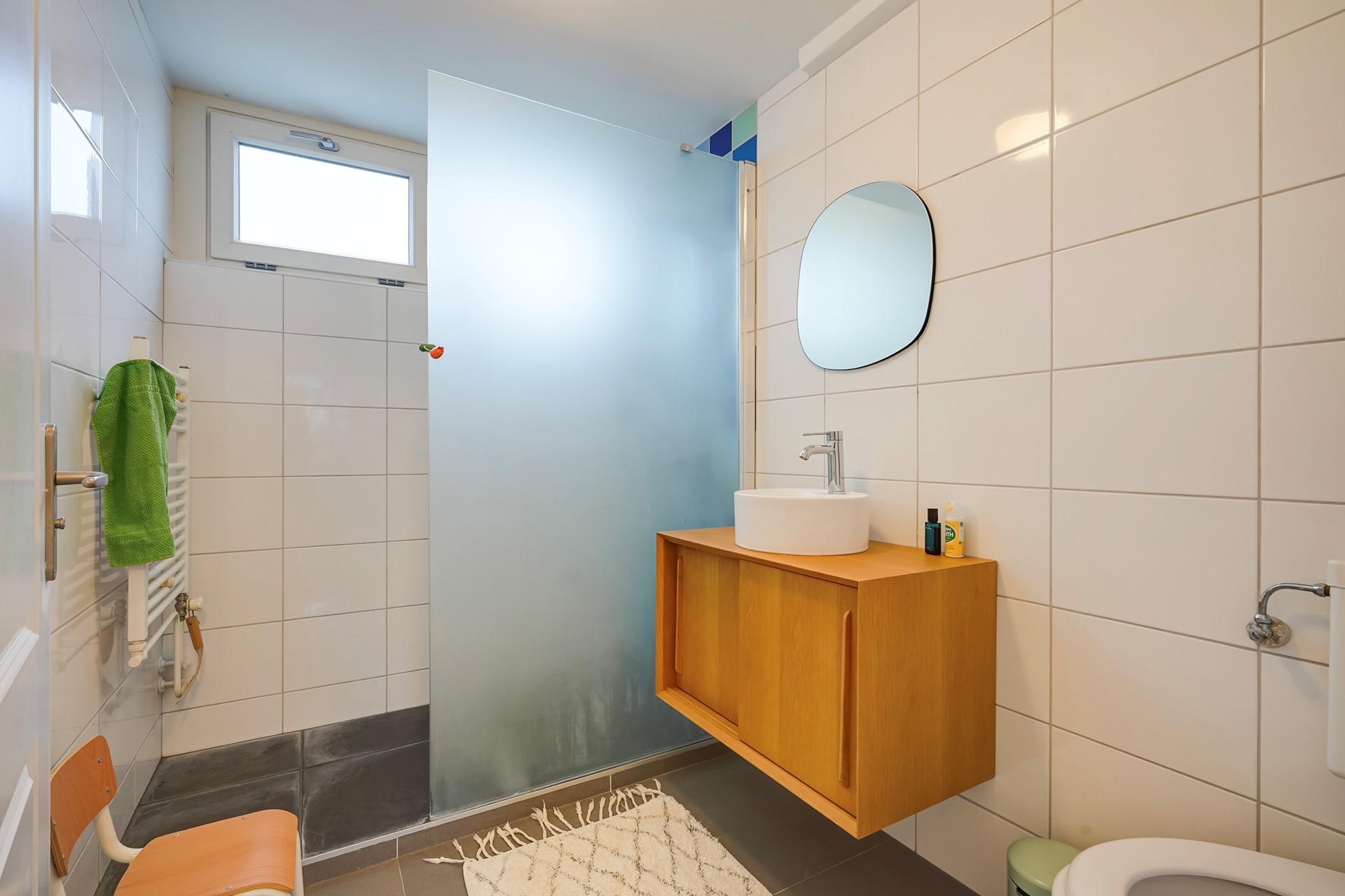 On the first floor there are three bedrooms. At the front of the house you will find two bedrooms, and at the rear there are the bathroom and the third bedroom on this floor. The bathroom is fitted with a toilet, walk-in shower, radiator and a washbasin with vanity unit. The bedrooms are generously sized and can of course also be used as a home office or gaming room.